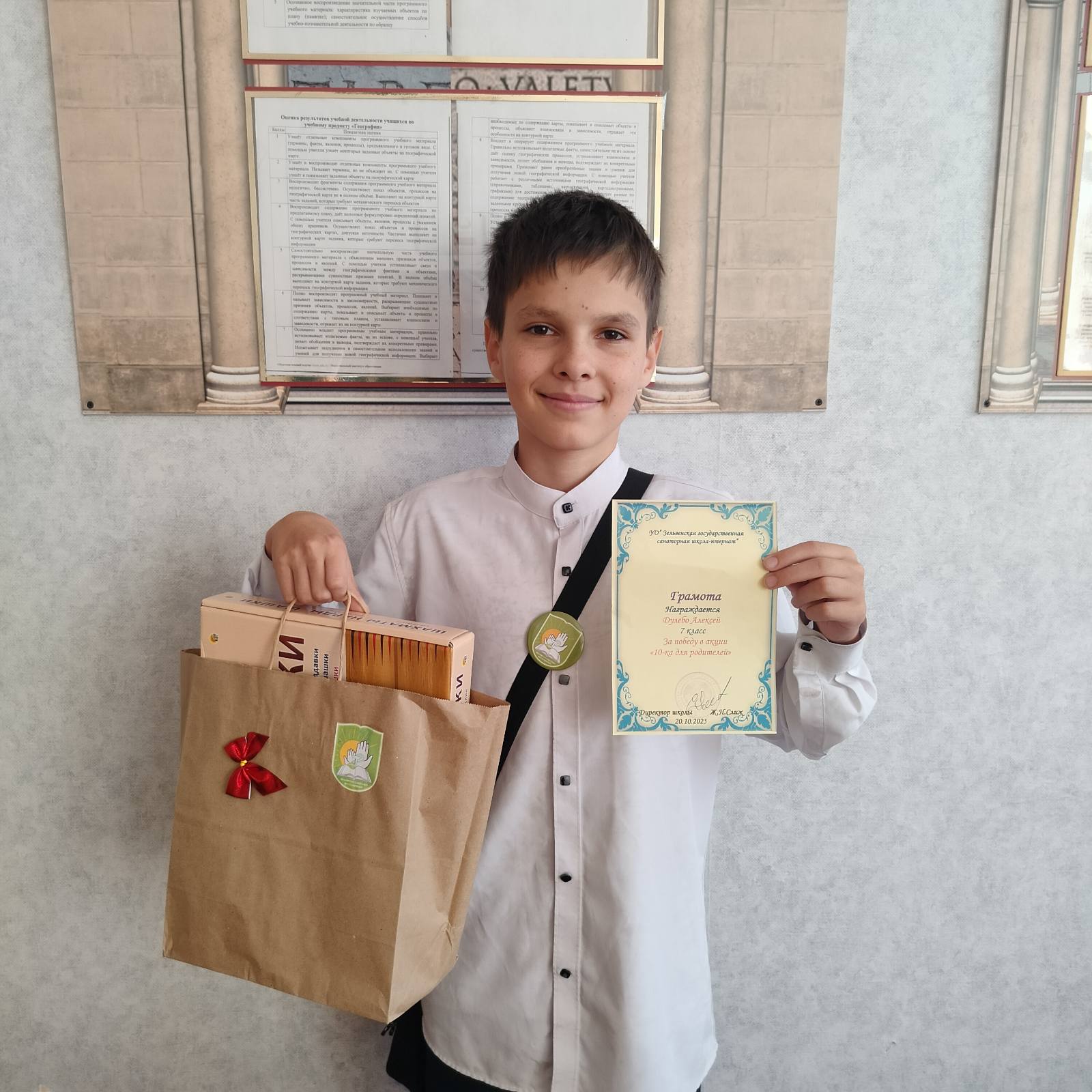 Учащийся 7 класса Дулебо Алексей порадовал своих любимых родителей успехами в учёбе. Мы гордимся тобой, Алексей! Также призами награждены победители конкурса рисунков «Для родителей с любовью!». Ими стали Заброцкая Дарья 7 класс, Петрович Рамина 6 класс и Буш Ольга 5 класс. Молодцы!