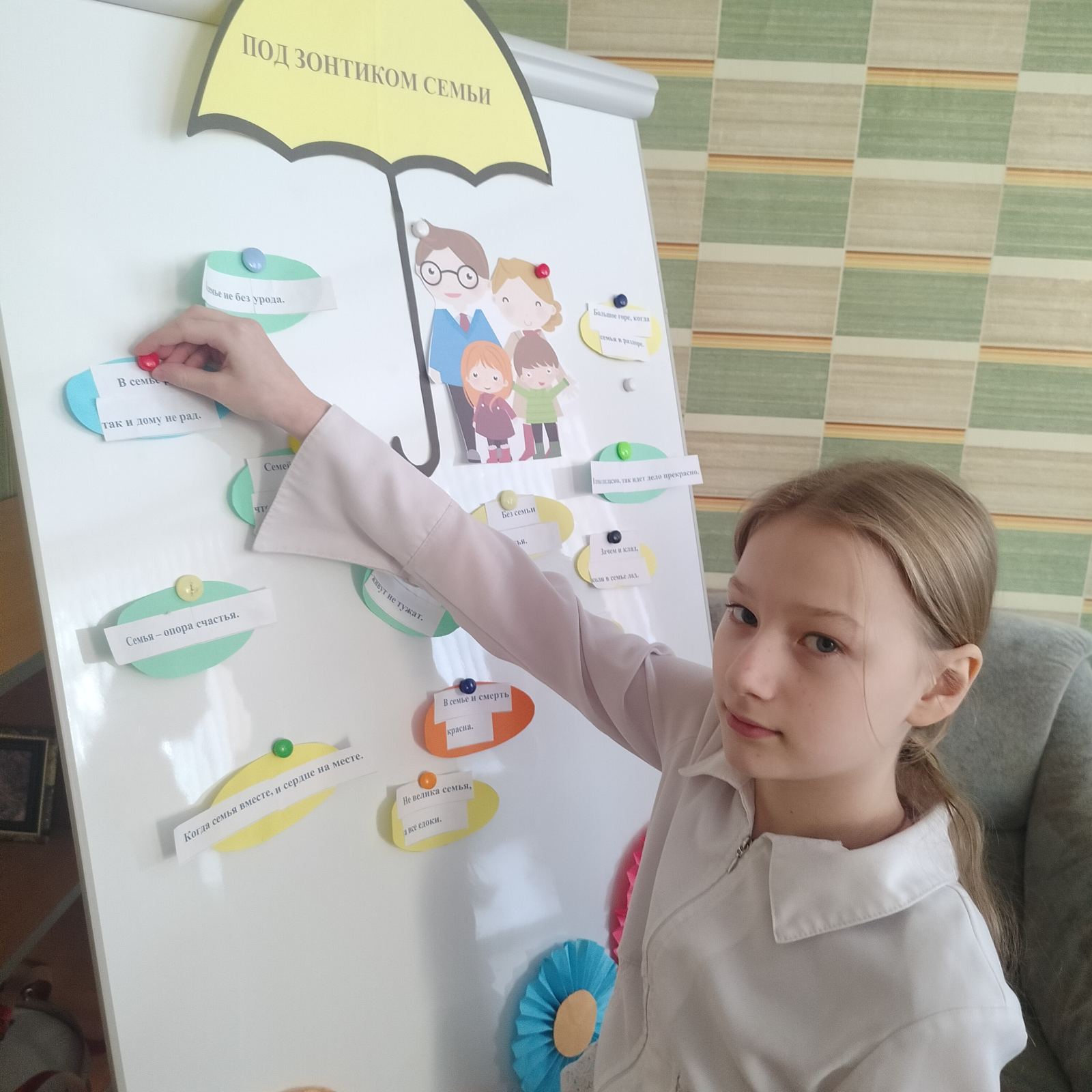 Именно в семье мы учимся любви, ответственности, заботе и уважению. В школе прошла акция «Под зонтиком семьи». Ребята активно собирали пословицы о семье, объясняя их смысл, рассуждали о том, что такое семейные ценности, что объединяет семью.