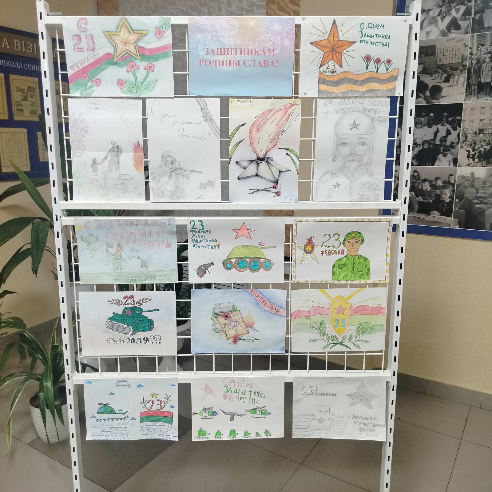 В учреждении прошёл конкурс рисунков "Защитникам Родины Слава!", приуроченный ко Дню защитника Отечества. Ждём подведения итогов! А также в фойе школы оформлена фотозона
