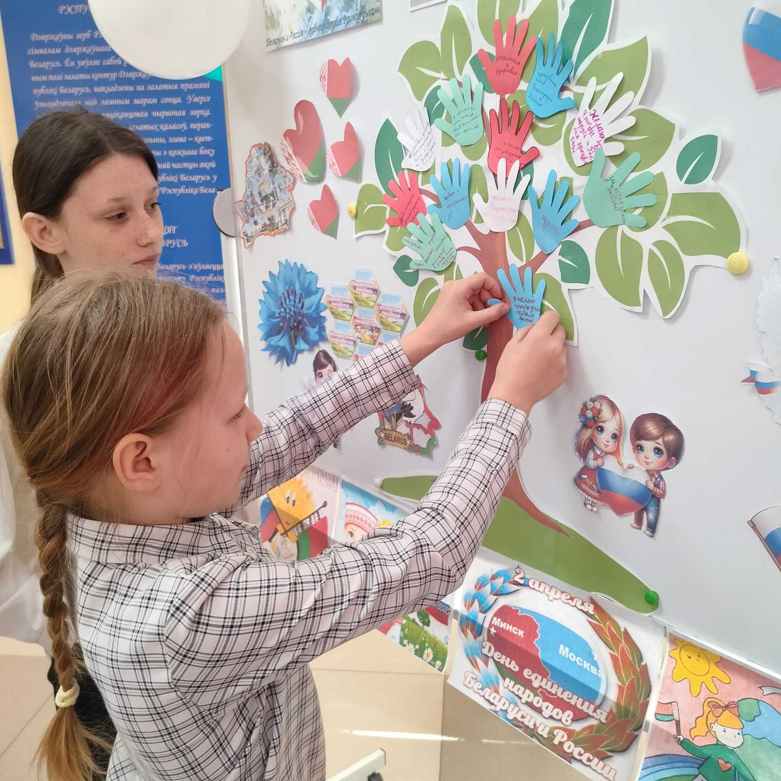 В рамках мероприятия были представлены творческие номера, отражающие богатство белорусской и русской культуры, проведена интерактивная игра «Угадай слово». В рамках акции ребята украсили «Дерево дружбы» разноцветными ладошками с поздравлениями и пожеланиями жителям Союзного государства мира, счастья, добра и благополучия.