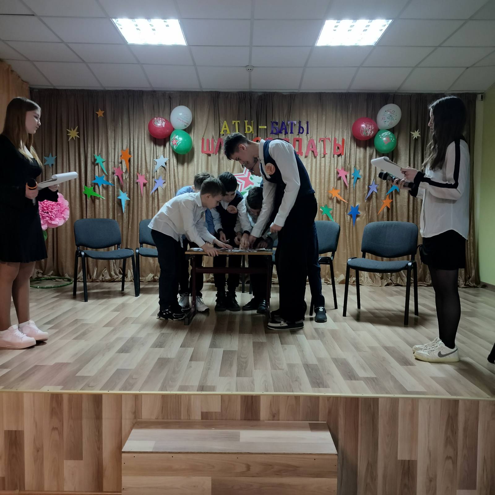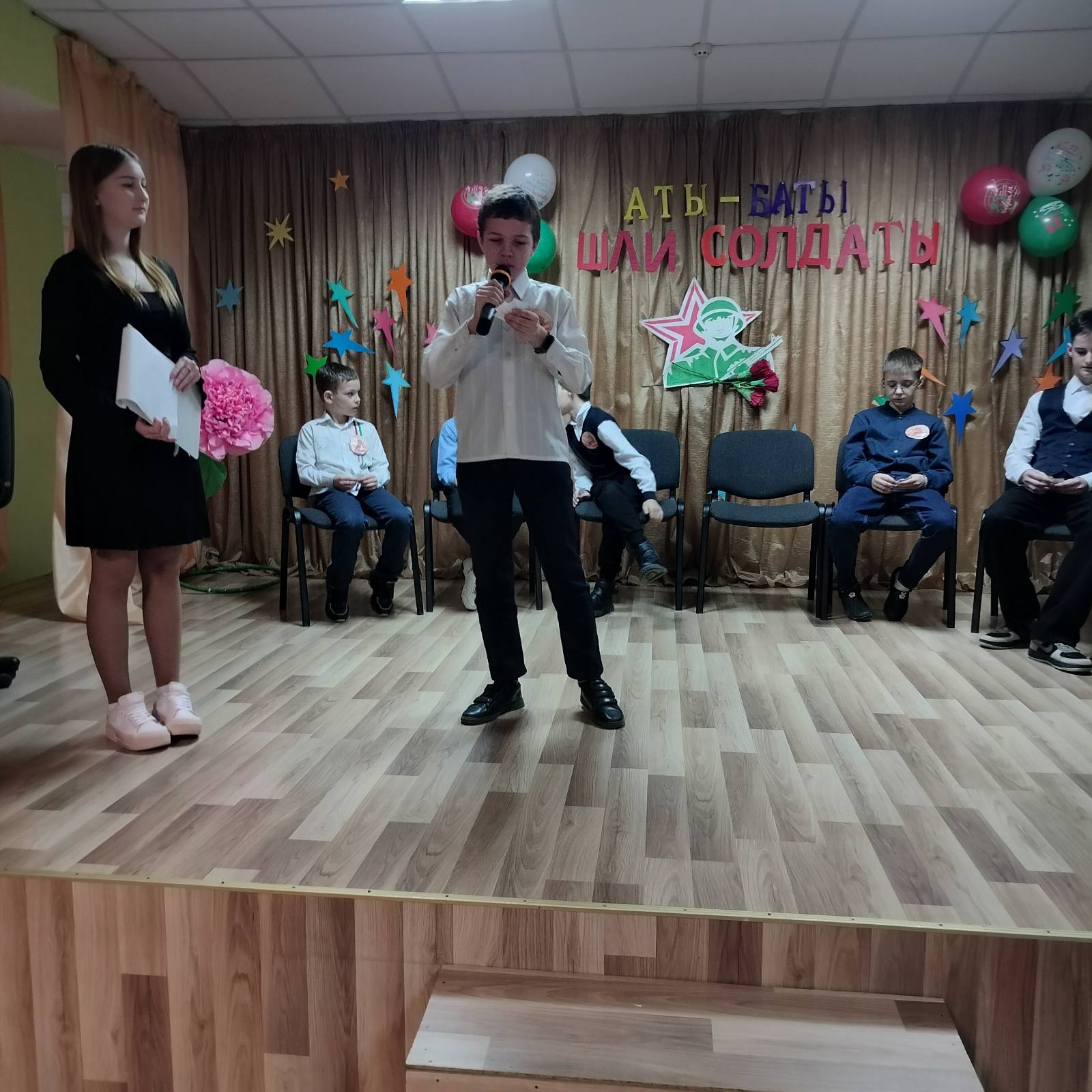 22.02.2025Аты-баты шли солдаты! Под таким девизом прошла конкурсная программа, посвящённая Дню защитника Отечества.Зрители тепло приветствовали аплодисментами ребят-конкурсантов. С большим азартом мальчишки участвовали в конкурсах: "Болтун - находка для шпиона", " Лучший повар", "Минное поле", "Стрелки", "Солдат ребёнка не обидит".Ребята соревновались в ловкости, смекалке, сообразительности и интеллекте, ведь эти качества очень нужны будущим защитникам Отечества.Мальчишки достойно проявили себя и успешно прошли все испытания. Девочки поддерживали ребят и дарили им песни и стихи. Самым долгожданным моментом стало награждение участников и вручение дипломов и призов.