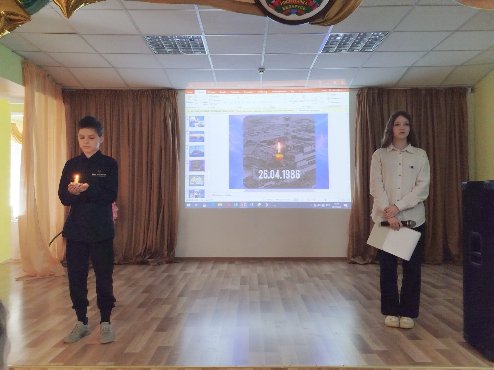 26.04.2025Сегодня прошёл час скорби “Это горькое слово Чернобыль”. В ходе мероприятия учащиеся вспомнили об этой жуткой трагедии, обсудили как повлияла авария на нашу страну, как и почему изменилась жизнь беларусов на заражённых территориях. Из предложенной видеопрезентации школьники узнали о масштабах трагедии, различных заболеваниях, вызванных радиацией, последствиях экологической катастрофы. Большое впечатление на ребят произвело мужество людей, которые ликвидировали последствия аварии на Чернобыльской АЭС, в память которых прошла минута молчания и была зажжена «Свеча памяти». Учащиеся с большим интересом прослушали сообщение главного специалиста Зельвенской районной инспекции природных ресурсов и охраны окружающей среды Воробья Алексея Иосифовича. Из его выступления ребята узнали о благоприятной экологической обстановке в Зельвенском районе и об уникальных природных достопримечательностях. В заключение мероприятия школьники пришли к выводу, что последствия аварии глобальны. Поэтому люди должны помнить о Чернобыле ради будущего, знать об опасности радиации и делать всё, чтобы подобные катастрофы никогда больше не повторялись.