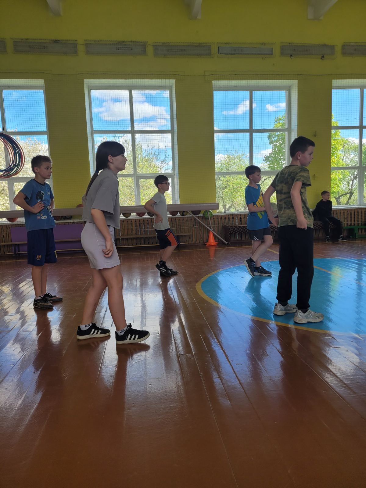 Ребята младшей группы соревновались в подвижной игре "Два капитана". Победу одержала команда 4 класса.